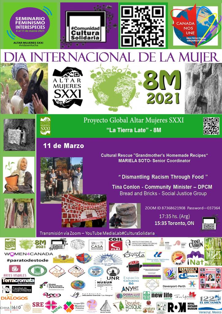 Lumy (Lourdes Minerva Fuentes) invited me to share with an IWD event she was part of, some thinking around ceramics, art, earth, women, ecology, violence against women, food security, indigenous issues, social justice, housing, advocacy and so on. I promised to do so, looked forward to meeting all these women and I was amazed! I am grateful for my abuela that I was able to hear and understand Spanish, so I heard about the wonderful projects from Mexico, Ecuador, Argentina on soil conservation, biodiversity, food sovereignty. It was an amazing day and I also heard from an old friend Lauren Baker who also spoke in Spanish. When it was my turn to share, Verónica translated. Muchas gracias, Verónica.