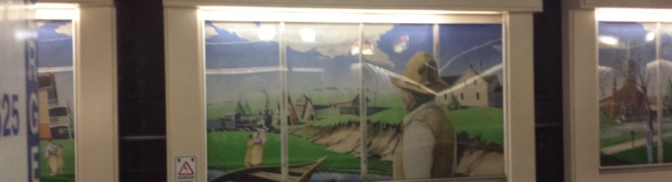 At Grandin Station, I saw the artist whose work was being featured in the mural there. I met Aaron Paquette through Face Book, but never before in person. In social media, we exchanged some ideas about art and spirituality but I had no idea that he was going to be in Edmonton, and in the conference that I happened to be participating in.